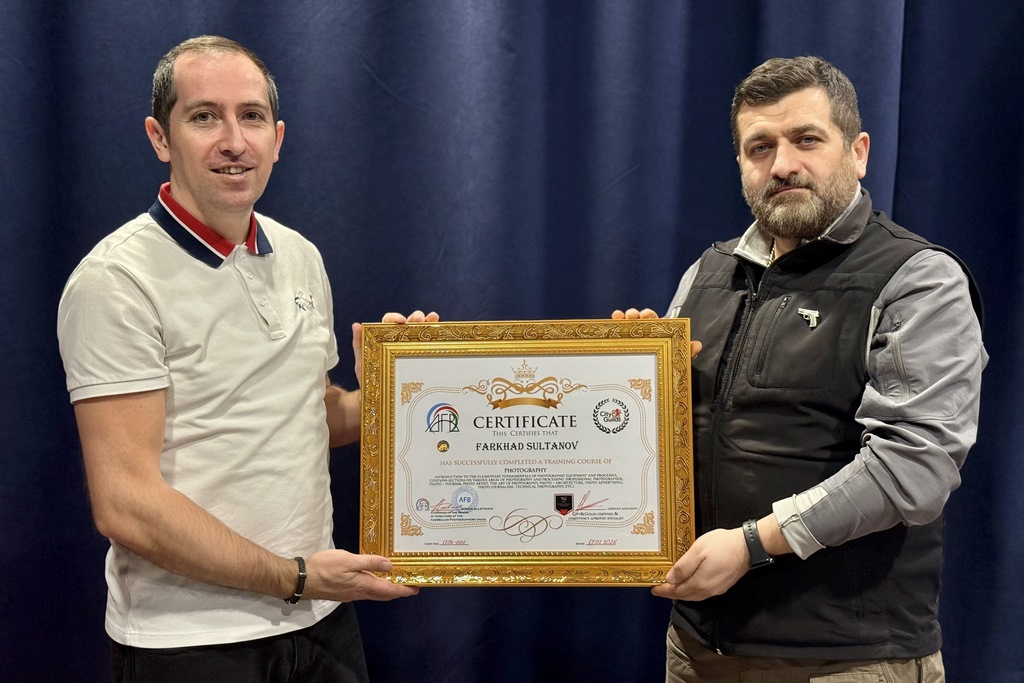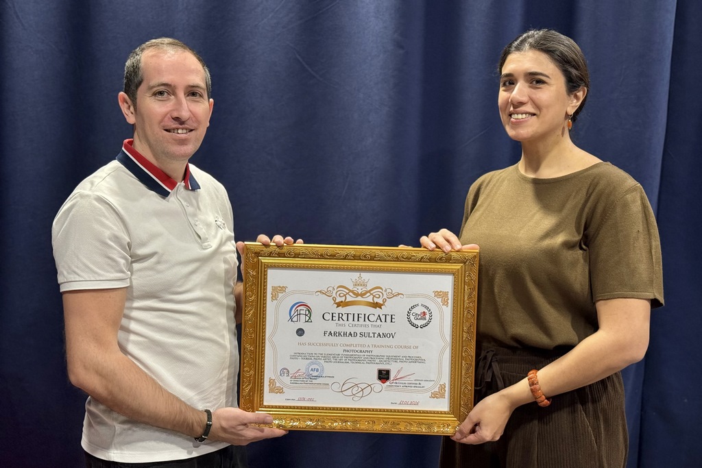 AFB ilə Böyük Britaniyada fəaliyyət göstərən City & Guilds beynəlxalq sertifikatlaşdırma qurumu arasında qurulan əməkdaşlıq çərçivəsində keçirilən fotoqrafiya təlim kursunu uğurla başa vuran Fərhad Sultanov beynəlxalq sertifikata layiq görülüb.